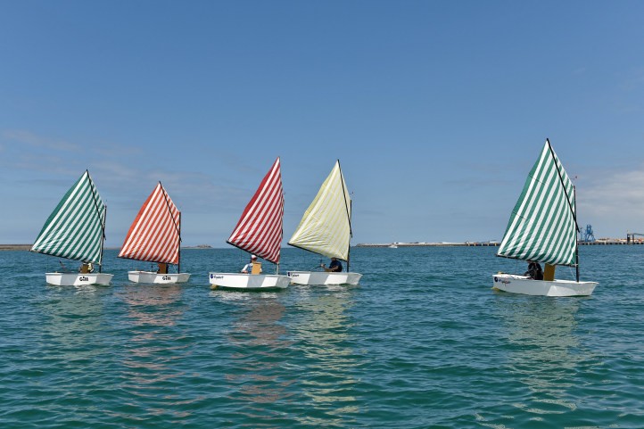Regata-performance 'Voile/toile — Toile/voile',de Daniel Buren,na Baía da Guanabara; peças agora estão no MAM — Foto: Guito Moreto