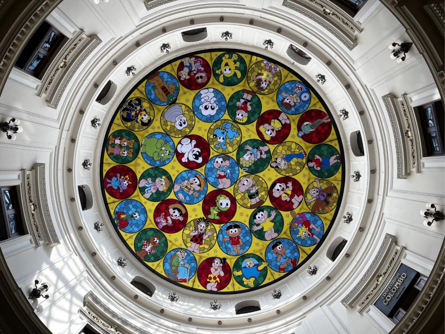 Rotunda do CCBB ganha intervenção temática da Turma da Mônica durante exposição sobre Mauricio de Sousa — Foto: Divulgação/Jen Moura