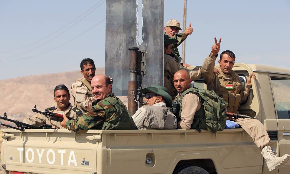 Forças curdas fotografadas em ofensiva a Mosul,em 2014 — Foto: AHMAD AL-RUBAYE / AFP