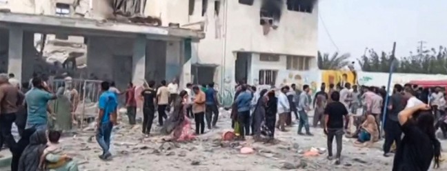 Imagem capturada da televisão estatal iraniana mostra o local que seria da escola da escola primária para meninas na província iraniana de Hormozgan,perto do estreito de Ormuz. — Foto: IRIB TV / AFP