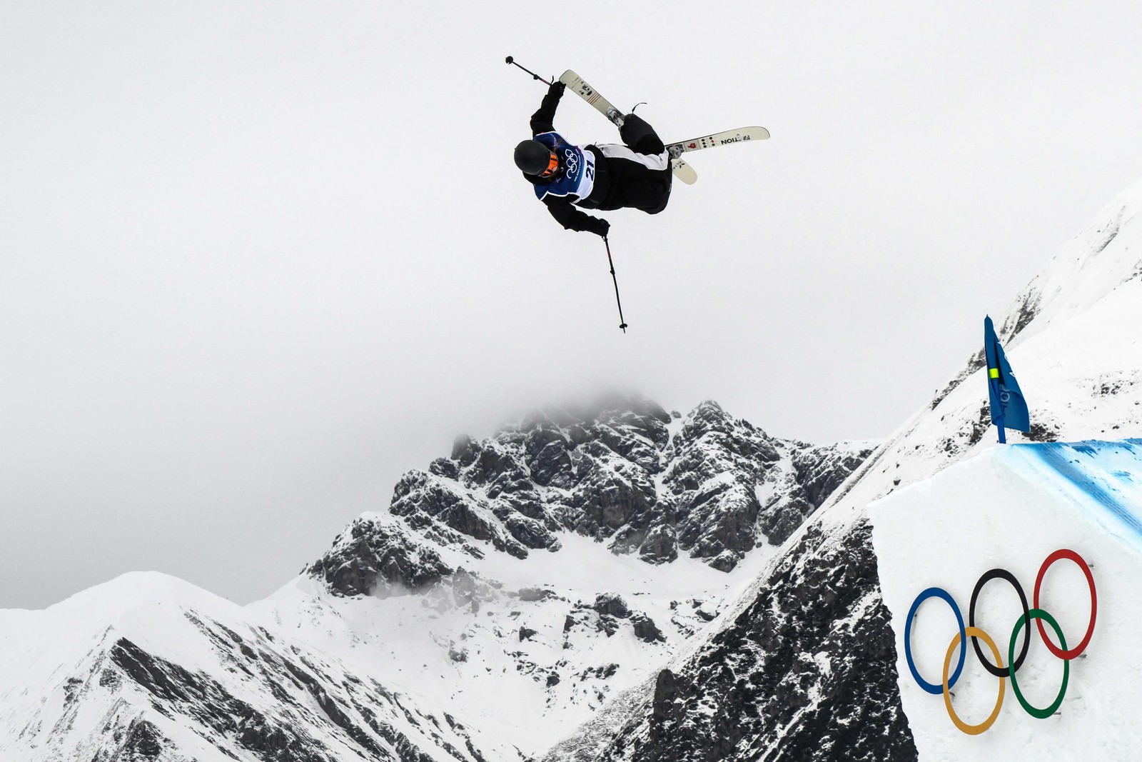 O finlandês Elias Syrja participa de um treino de slopestyle de esqui estilo livre masculino durante os Jogos Olímpicos de Inverno de Milão-Cortina 2026 no Livigno Snow Park,em Livigno (Valtellina),em 6 de fevereiro de 2026. — Foto: Jeff PACHOUD / AFP