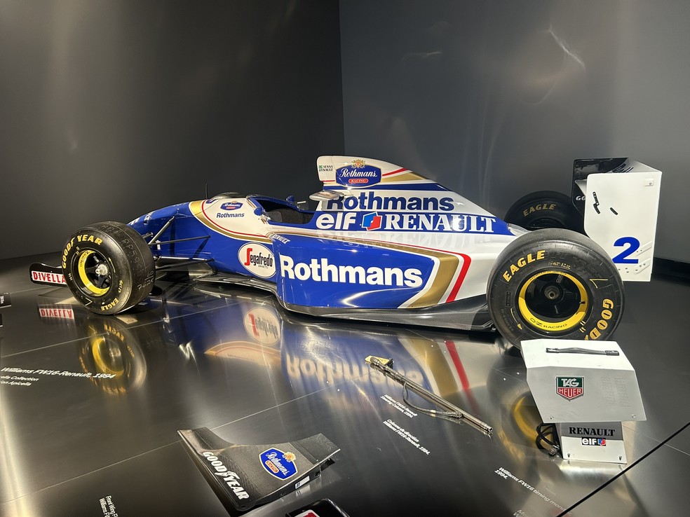 Williams pilotada por Ayrton Senna em 1994 também é exposta em exibição em Luxemburgo — Foto: Márcio Arruda