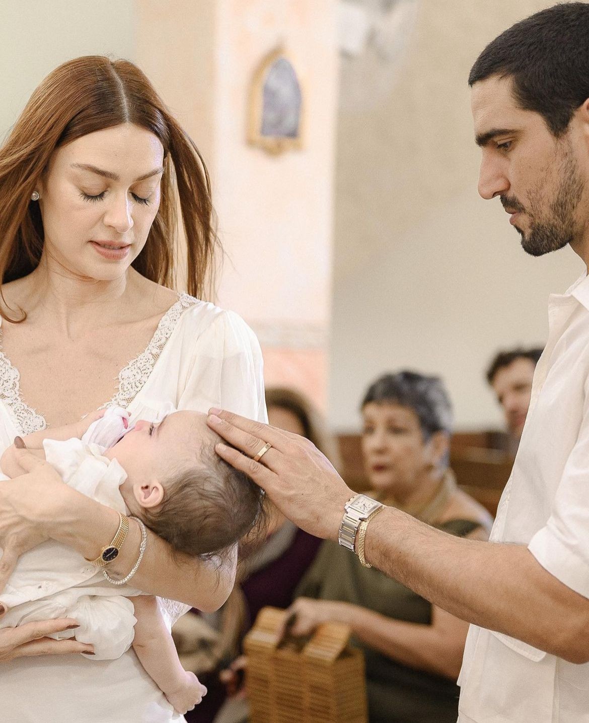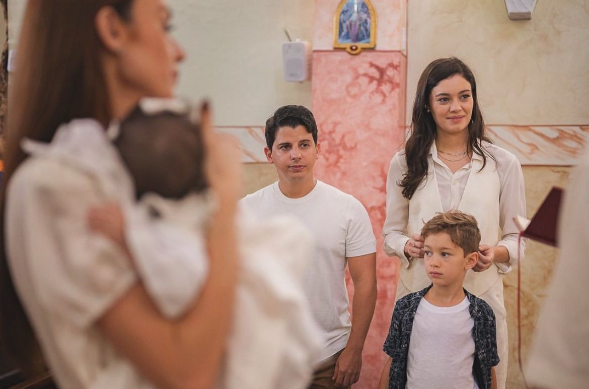 Thaila Ayala e Renato Góes no batizado da filha — Foto: Reprodução