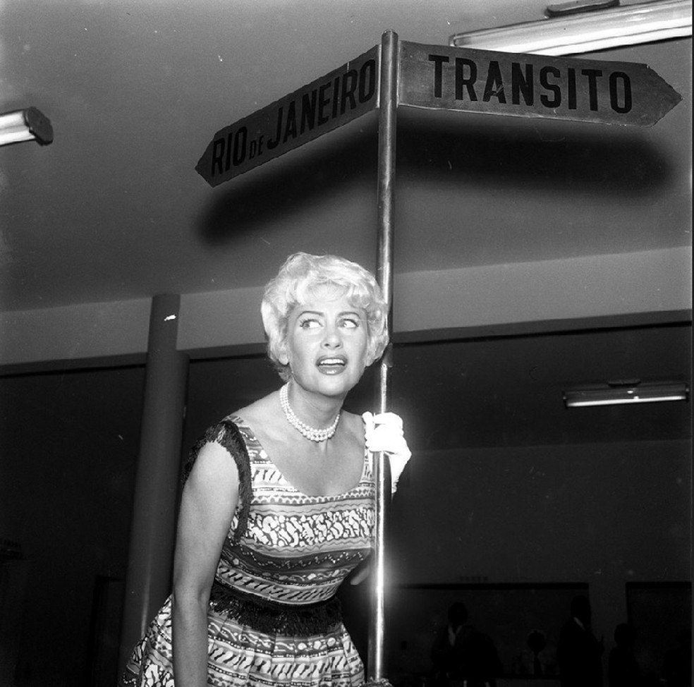 Atriz francesa Martine Carol desembarcando no Aeroporto Internacional do Rio de Janeiro — Foto: Arquivo O GLOBO