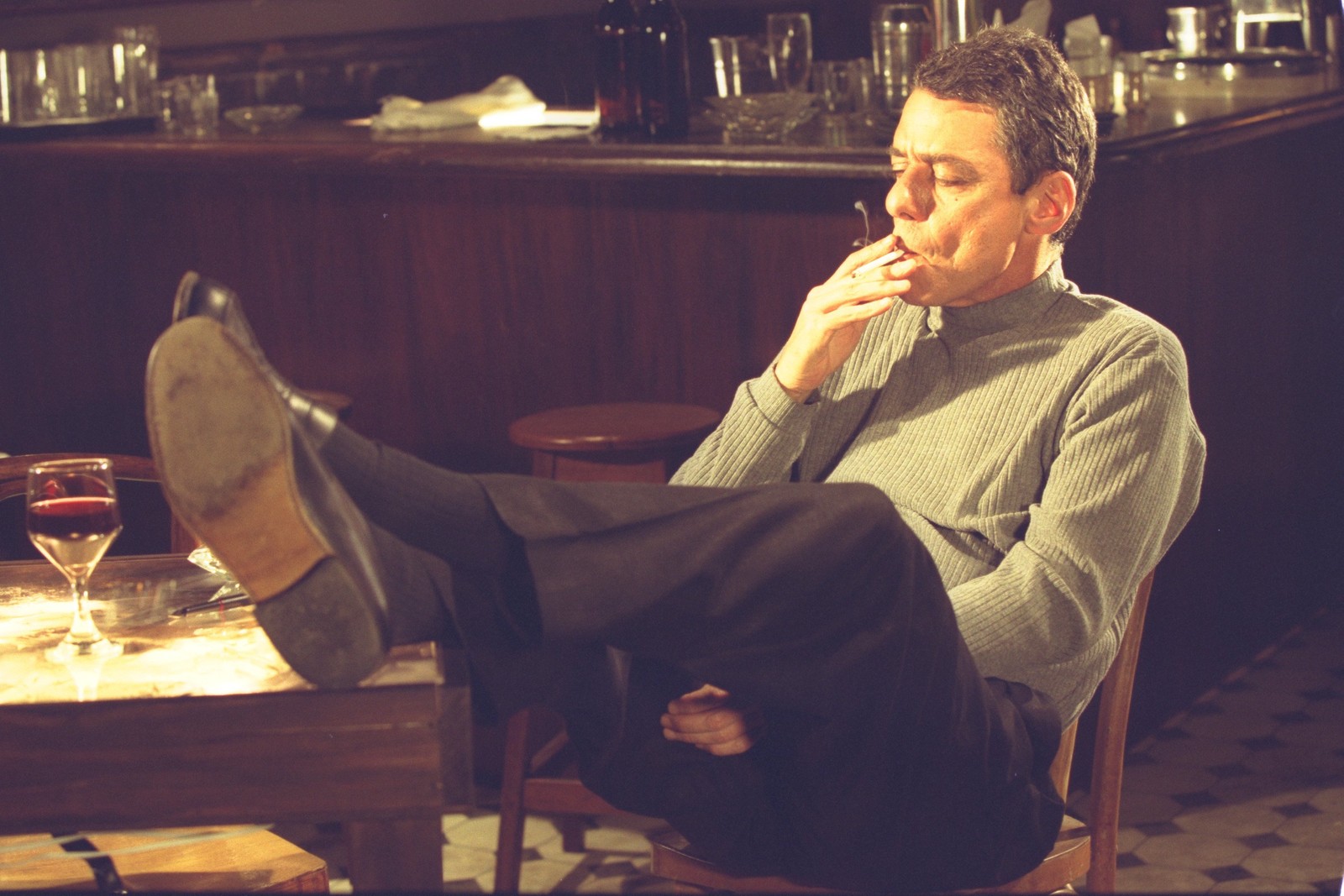 Chico Buarque num galpão em São Cristóvão,Rio de Janeiro,durante as filmagens do clipe da canção "Carioca",em 1998 — Foto: Ana Branco / Agência O Globo