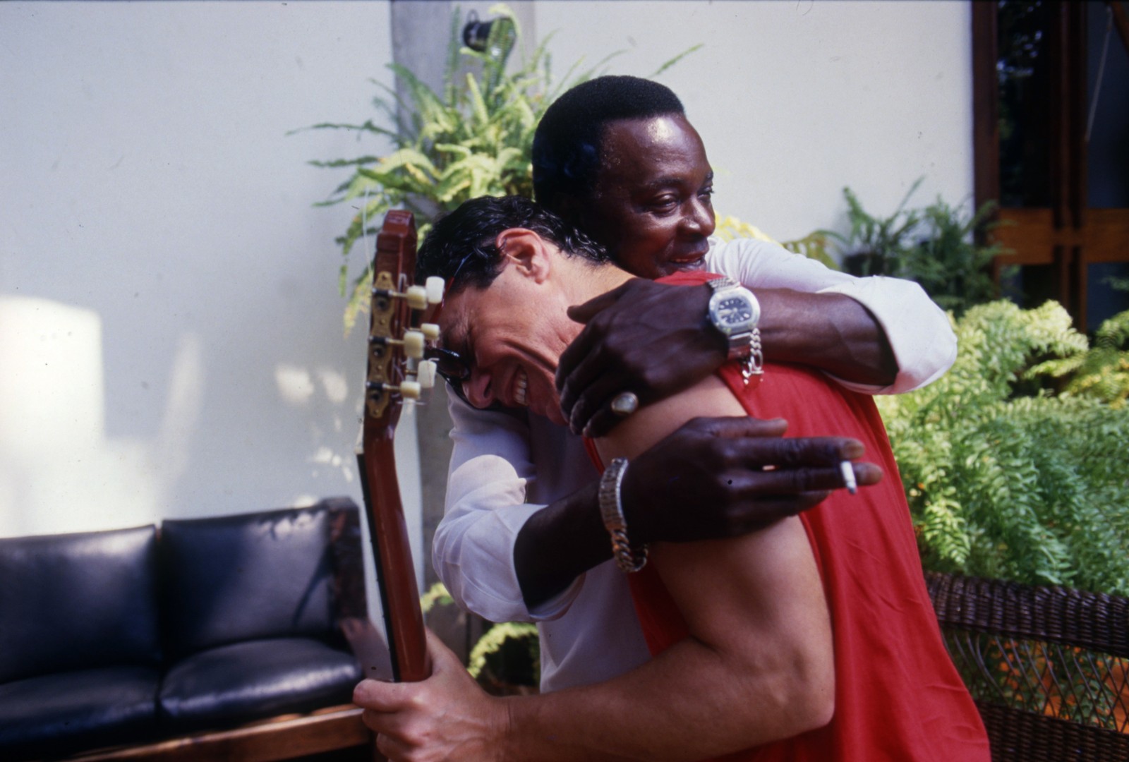 hico Buarque de Holanda (cantor e compositor),com o amigo Nilton Delfino Marçal,mais conhecido como Mestre Marçal (instrumentista e ritmista) — Foto: Eurico Dantas / Agência O Globo