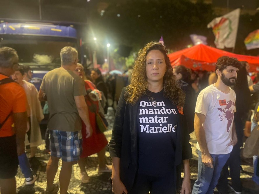 Monica Benicio na manifestação — Foto: Pedro Araújo
