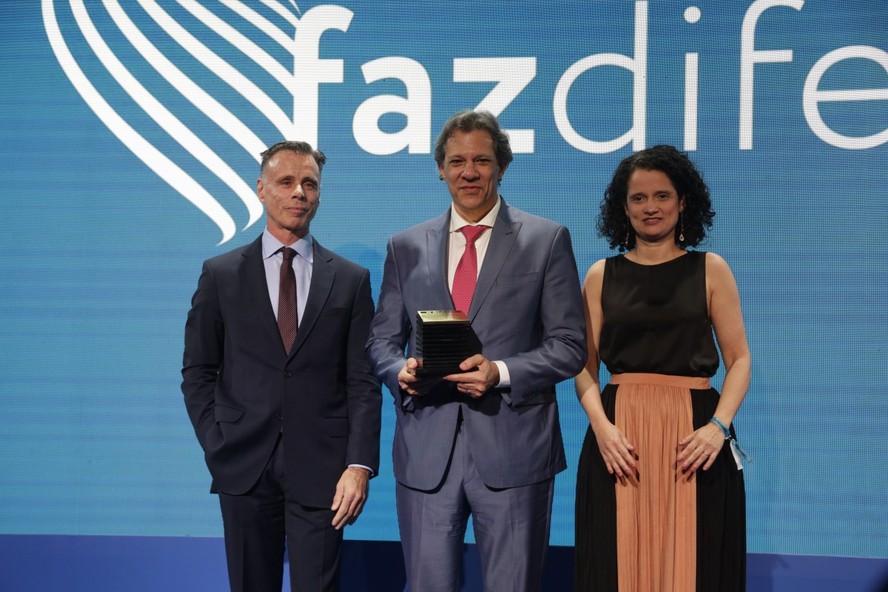 O ministro da Fazenda,Fernando Haddad,recebeu o prêmio Faz Diferença,na categoria Economia,nesta quarta-feira (19),no Rio de Janeiro. O troféu foi entregue pela editora de Economia do GLOBO,e pelo colunista,Lauro Jardim. Após receber o prêmio,Haddad agradeceu ao GLOBO e à Firjan pela iniciativa. Também enalteceu os secretários da Fazenda,o Congresso e o Judiciário,sem os quais,segundo ele,não teria conseguido executar um bom trabalho.