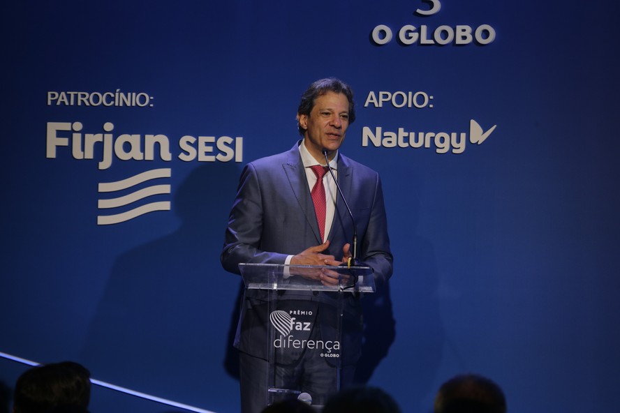 O ministro da Fazenda,Fernando Haddad,discursa no Prêmio Faz Diferença,do GLOBO — Foto: Alexandre Cassiano