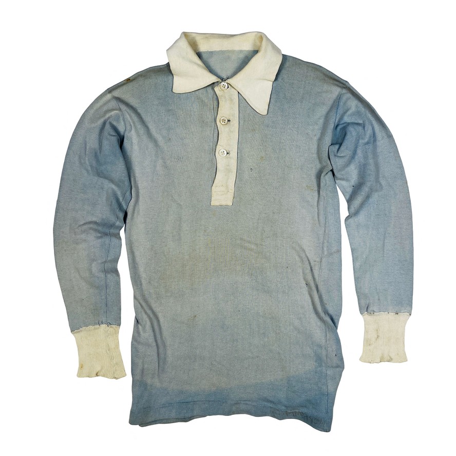 Única camisa da seleção uruguaia ouro olímpico em 1924 não recebe oferta em leilão — Foto: Zorrilla Subastas/AFP