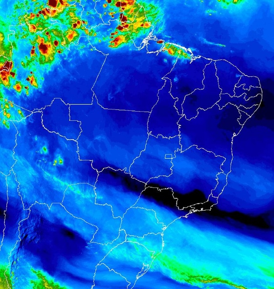 Na parte central do país,englobando o Centro-Oeste e partes do Sudeste,Nordeste e Norte,segue em atuação uma área de baixa umidade,provocada por anticiclone em altos níveis que mantém a massa de ar seca na região. Entre os estados afetados estão: Goiás,Mato Grosso,Mato Grosso do Sul,Minas Gerais,São Paulo,Paraná,Rio de Janeiro,Tocantins,Maranhão,Piauí,Bahia,além do Distrito Federal. Veja abaixo: