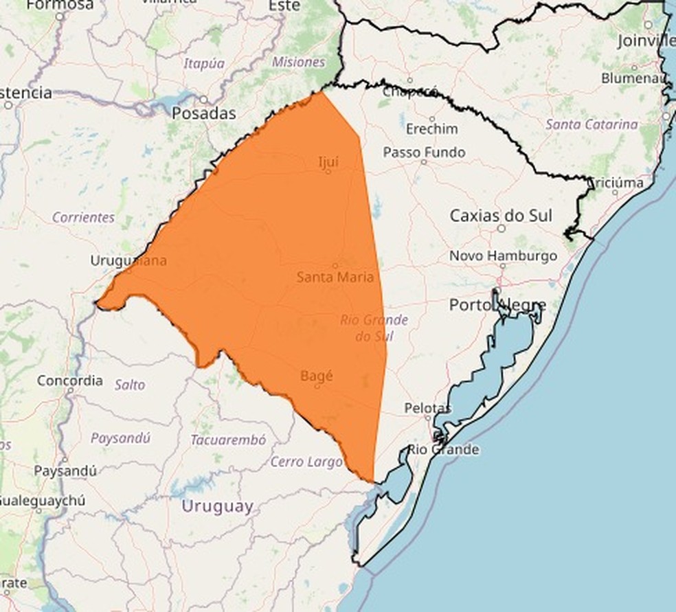 O Instituto Nacional de Meteorologia (Inmet) alertou para a ocorrências de tempestades no Rio Grande do Sul e no sul de Santa Catarina. No sudoeste do RS,o alerta do fenômeno para a região foi classificado como de "Perigo". Enquanto isso,na porção central do país,uma área de baixa umidade segue em atuação,atingindo 10 estados.