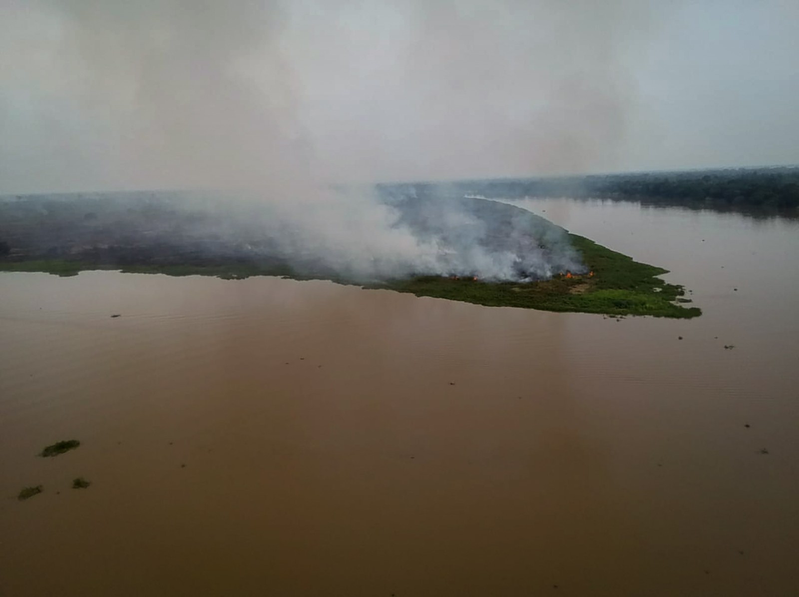 Marinha do Brasil apoia ações de combate a incêndios florestais no Pantanal - Patrulhas navais auxiliam a identificar focos de queimadas. Lancha de Operações Ribeirinhas foi utilizada no transporte de brigadistas — Foto: Marinha do Brasil