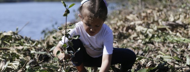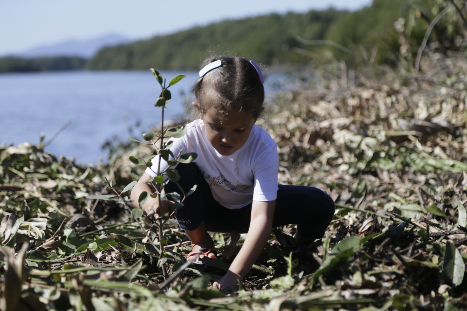 Nina,aos 3 anos,plantando a primeira muda no manguezal da Baía de Guanabara — Foto: Divulgação/Instituto Mar Urbano
