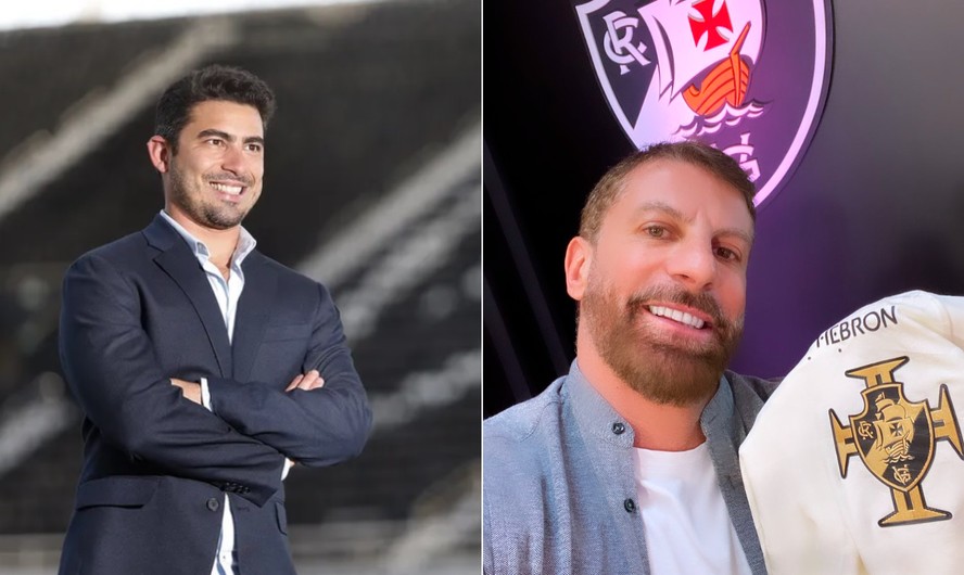 Thairo Arruda,à esquerda,e Pedrinho,presidente do Vasco da Gama — Foto: Fotos de Divulgação e Reprodução