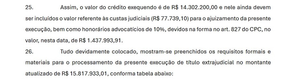 Trecho da petição inicial que mostra a atual dívida do Vasco — Foto: Reprodução