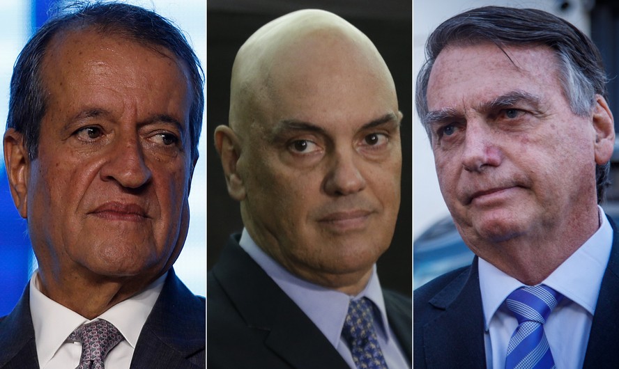 Da esquerda para a direita: o dirigente nacional do PL,Valdemar Costa Neto; o ministro do STF Alexandre de Moraes e o ex-presidente Jair Bolsonaro — Foto: Fotos de Cristiano Mariz/O Globo,e Domingos Peixoto/O Globo e Brenno Carvalho/O Globo