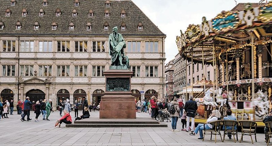 Praça Gutenberg,em Estrasburgo,celebra pioneiro da impressão — Foto: Clara Tuma/The New York Times