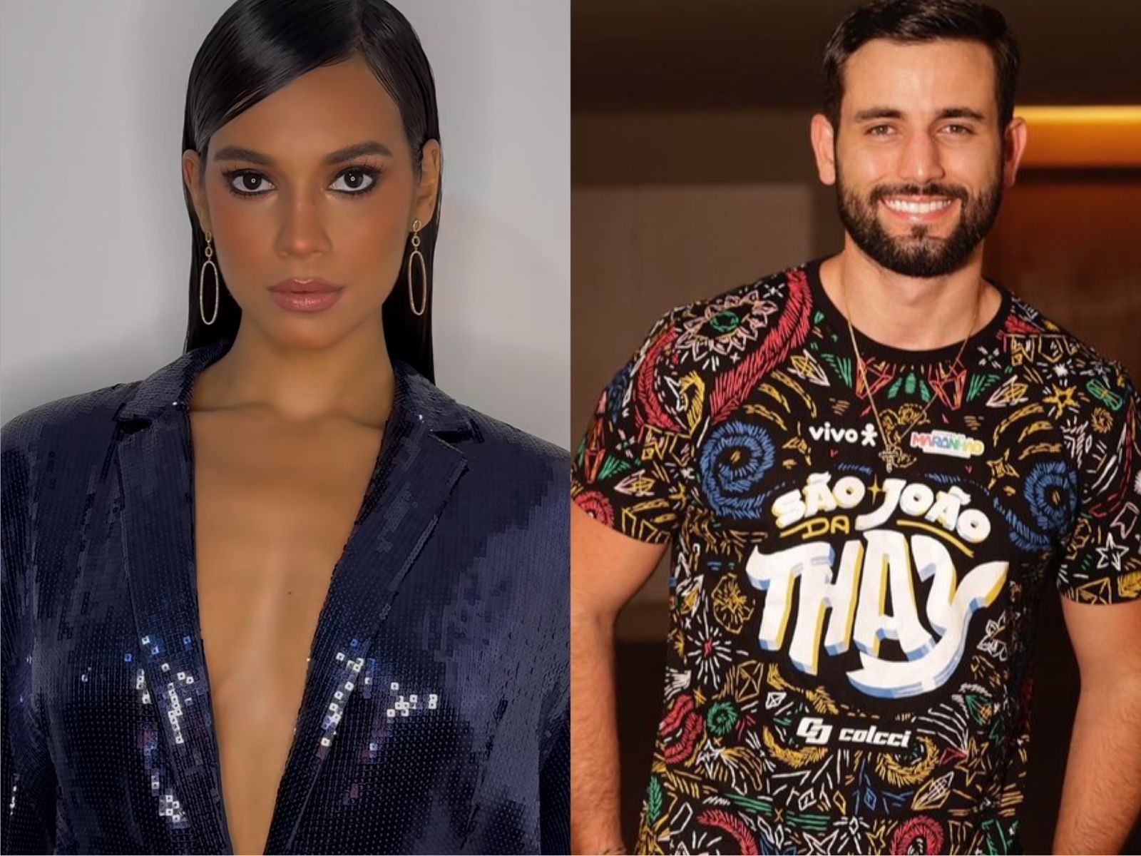 Logo após a saída de Davi Brito do "BBB 24",uma crise no seu relacionamento com Mani Reggo foi iniciada,resultado no término. Recentemente eles foram ao mesmo evento,o São João da Thay — Foto: Reprodução