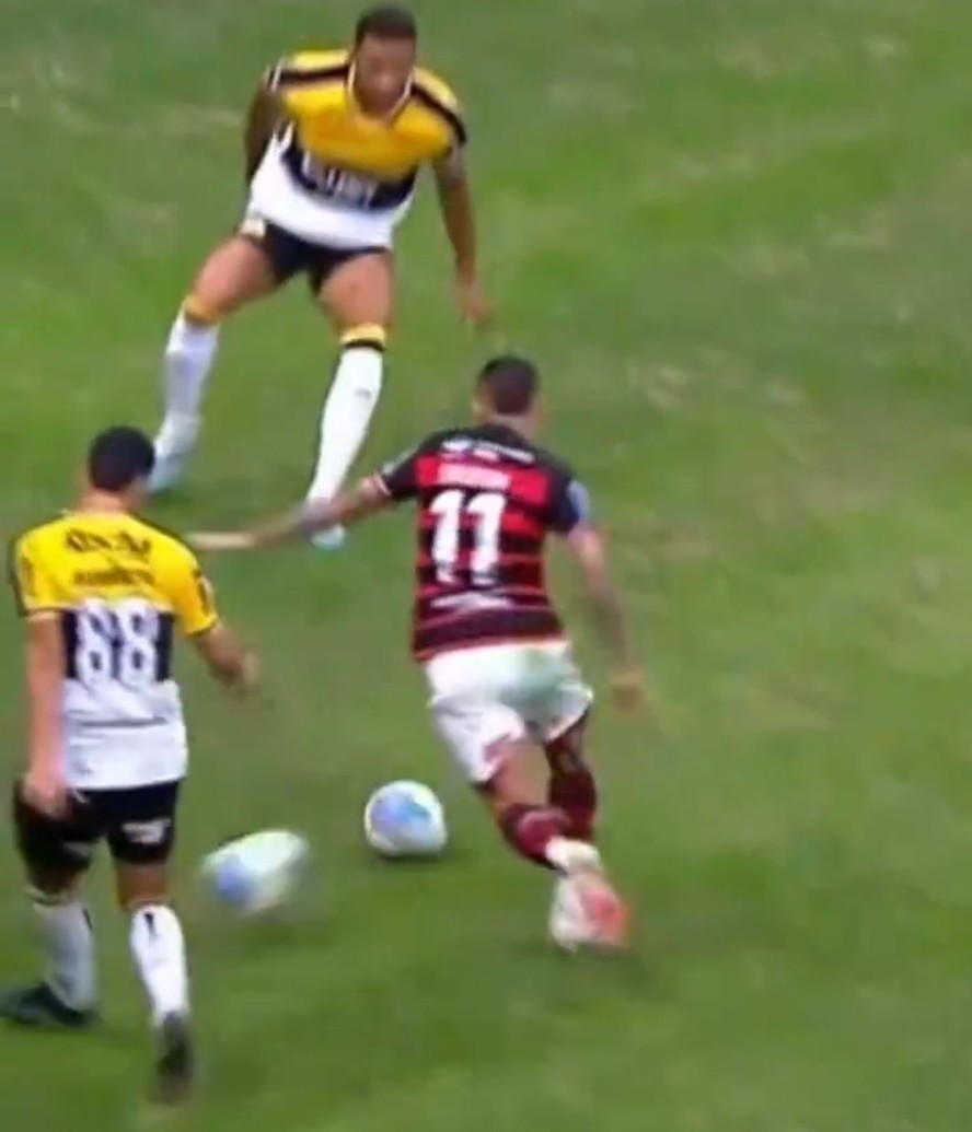 O Flamengo derrotou o Criciúma,ontem,com um lance que deu o que falar no fim da partida. O volante Barreto,da equipe catarinense,chutou dentro da área e de maneira proposital,uma segunda bola que estava em jogo,na bola que estava sendo usada em campo. O árbitro marcou pênalti pela infração,convertido por Gabigol. O lance,no entanto,não é inédito no futebol.