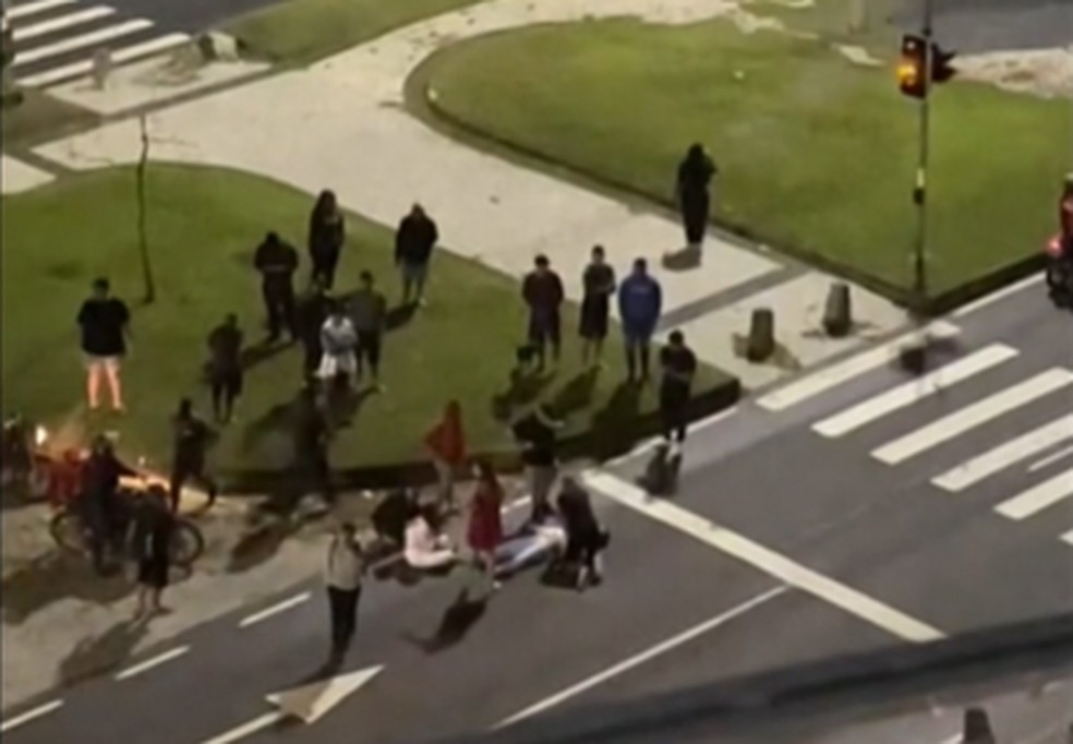 Momento em que socorrista faz massagem cardíaca para tentar reanimar Fabio Toshiro — Foto: Reprodução/TV Globo
