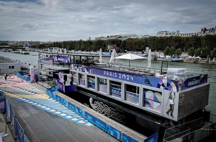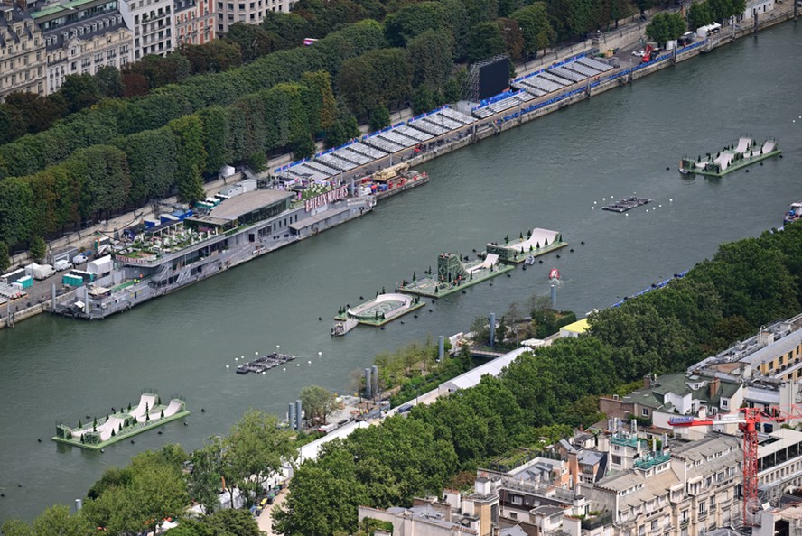 Preparação do rio Sena para abertura de Paris-2024 — Foto: AFP