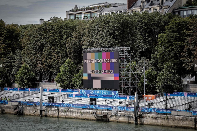 Telão para público acompanhar abertura de Paris-2024 — Foto: AFP