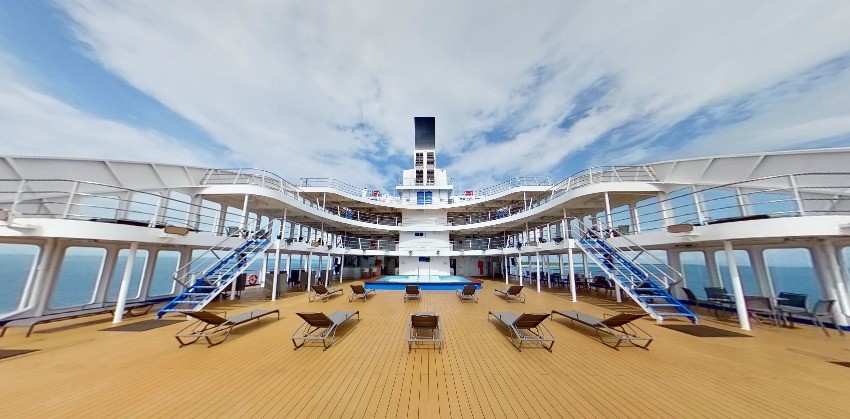 Navio tem 126 metros de cumprimento,piscina,spa,academia e outras instalações