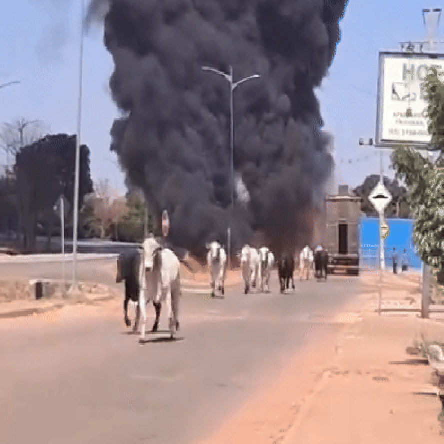 Bois que seguiam para abate em frigorífico correm pelas ruas de cidade de MT após caminhão pegar fogo — Foto: Reprodução
