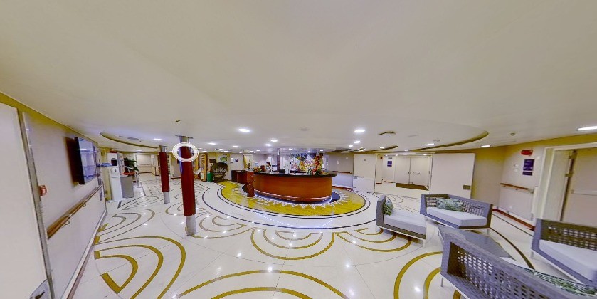 Saguão do navio e loja de conveniências