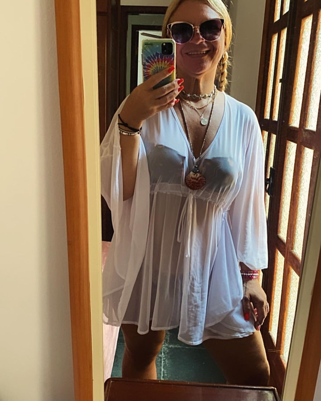 Debora também mostra que não dispensa conforto e estilo em suas escolhas de beachwear. Fã do clássico cortininha e adepta do tomara que caia,um clássico da moda praia,a empresária costuma postar cliques em seu perfil exibindo os modelitos e coleciona elogios.