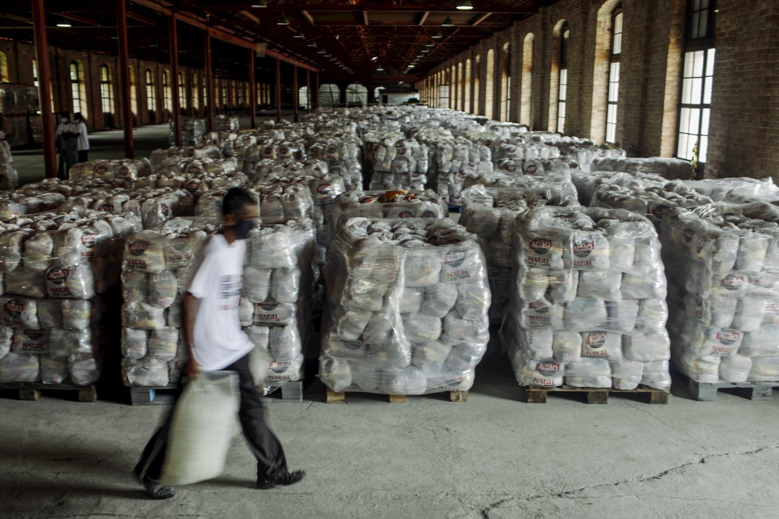 Ação da Cidadania distribui cestas básicas para comunidades no Natal Sem Fome,em um galpão na Gamboa. — Foto: Gabriel de Paiva/ Agência O Globo - 17/12/2021