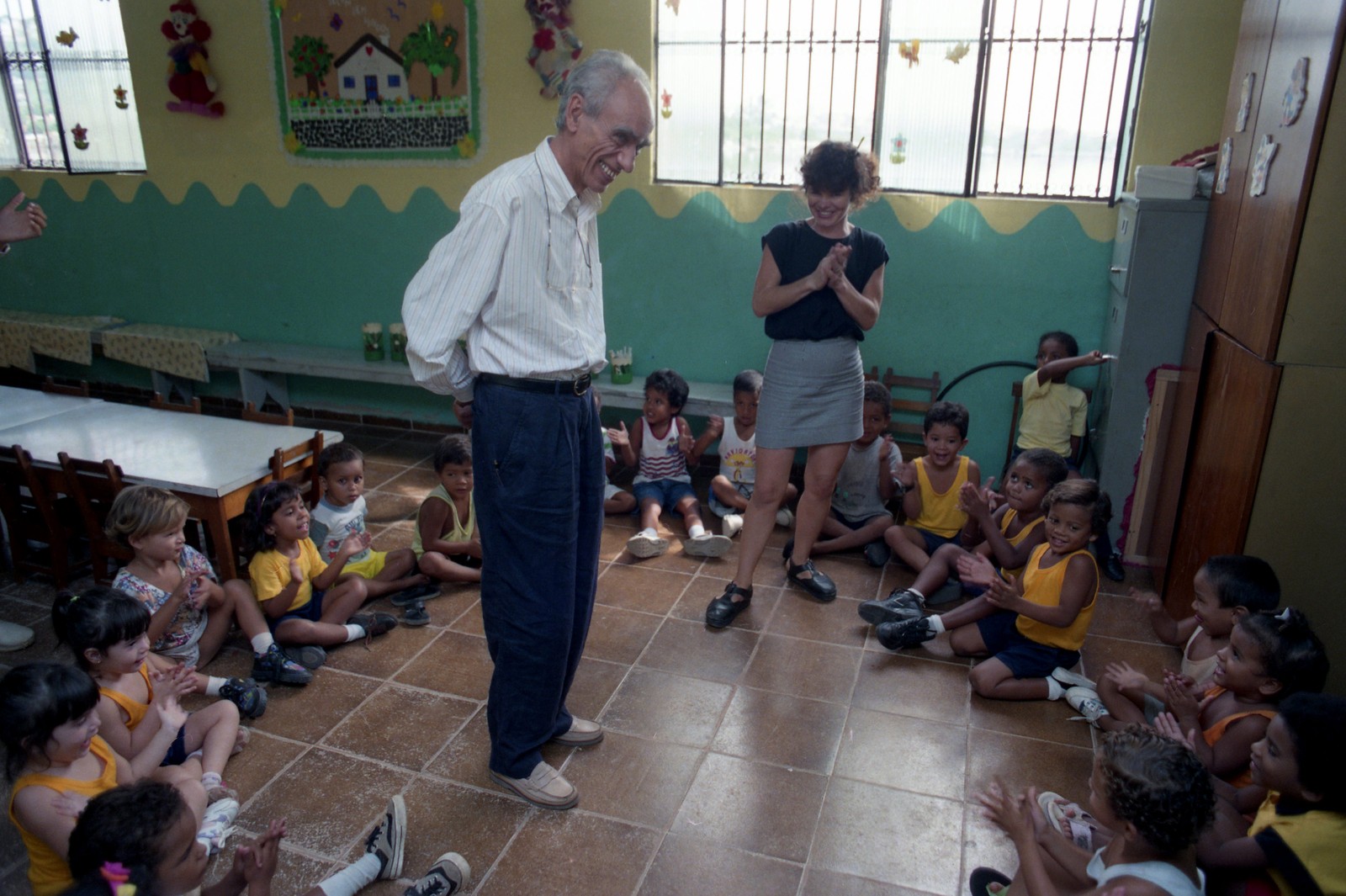 Herbert de Souza visita a creche Pequenos Poetas,em 1995 — Foto: Julio Cesar Guimarães / Agência O Globo