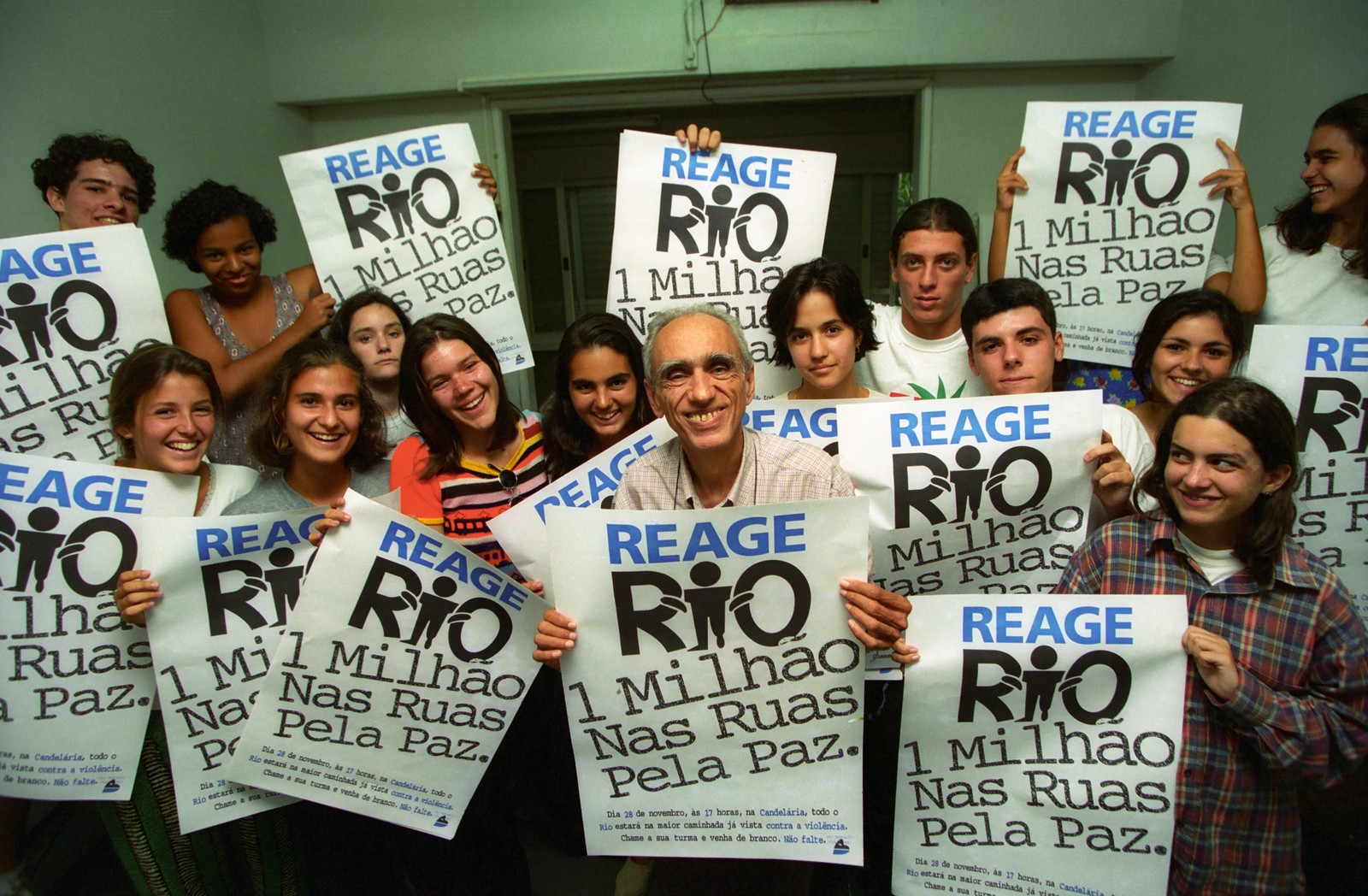 Cartazes de convocação para Campanha Reage Rio,em 1995 — Foto: Anibal Philot / Agência O Globo