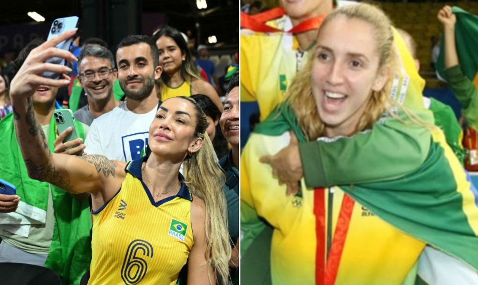 Thaísa nas Olimpíadas de Paris-2024 e quando entrou para o grupo em 2008 — Foto: Divulgação