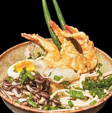 Pelo Dia dos Pais,o Sunsaki (3628-1111) incluirá o tradicional Tempurá Udon no rodízio (a partir de R$ 168) do próximo fim de semana. O prato leva tempurá de camarão,macarrão udon,caldo de peixe,missô,ovo cozido,nabo em conserva,shiitake,mandiopan e cebolinha — Foto: Divulgação