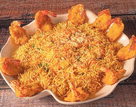 O Siri (2610-6652) sugere para o Dia dos Pais o Camarão São Francisco.O prato é preparado com camarão médio empanado,risoto de queijo coalho e bacon salpicado com batata palha. Custa R$ 139,90 e serve de duas a três pessoas — Foto: Divulgação/Dante Rabelo