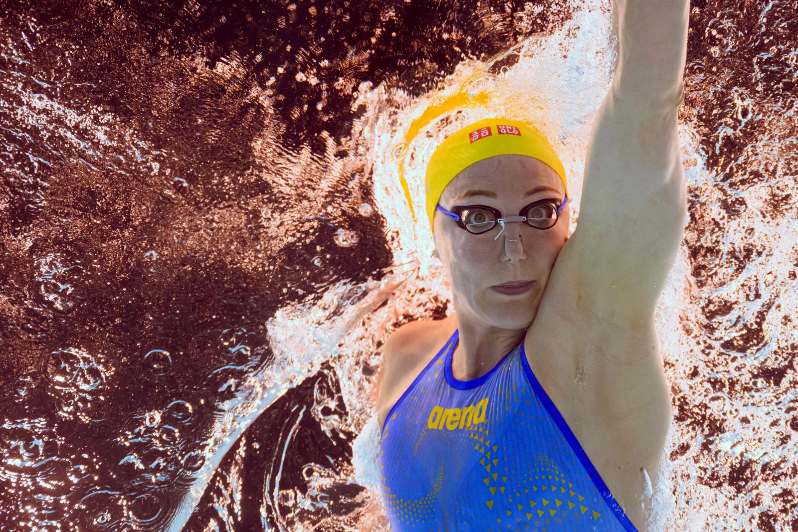 A sueca Sarah Sjoestroem competindo em uma bateria dos 100m livres femininos de natação — Foto: Oli Scarff / AFP