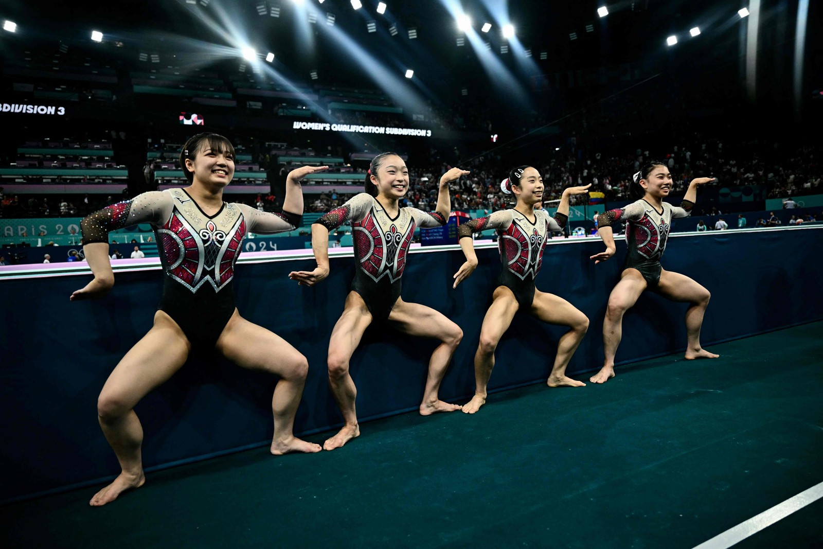 Seleção japonesa de ginástica artística durante os Jogos Olímpicos Paris 2024 — Foto: Loic VENANCE / AFP