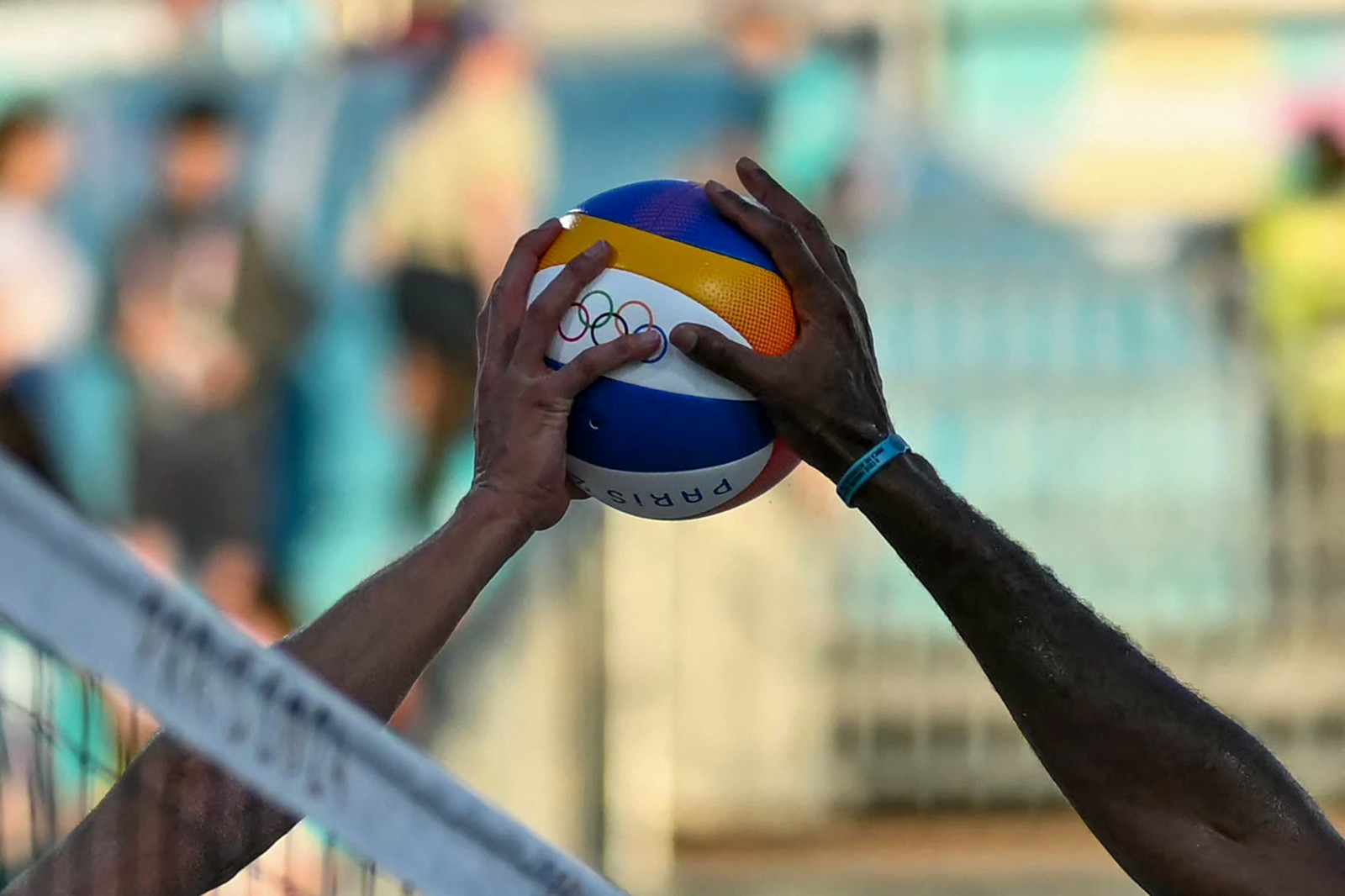 Partida de vôlei de praia masculina entre EUA e Marrocos — Foto: Kirill Kudryavtsev / AFP