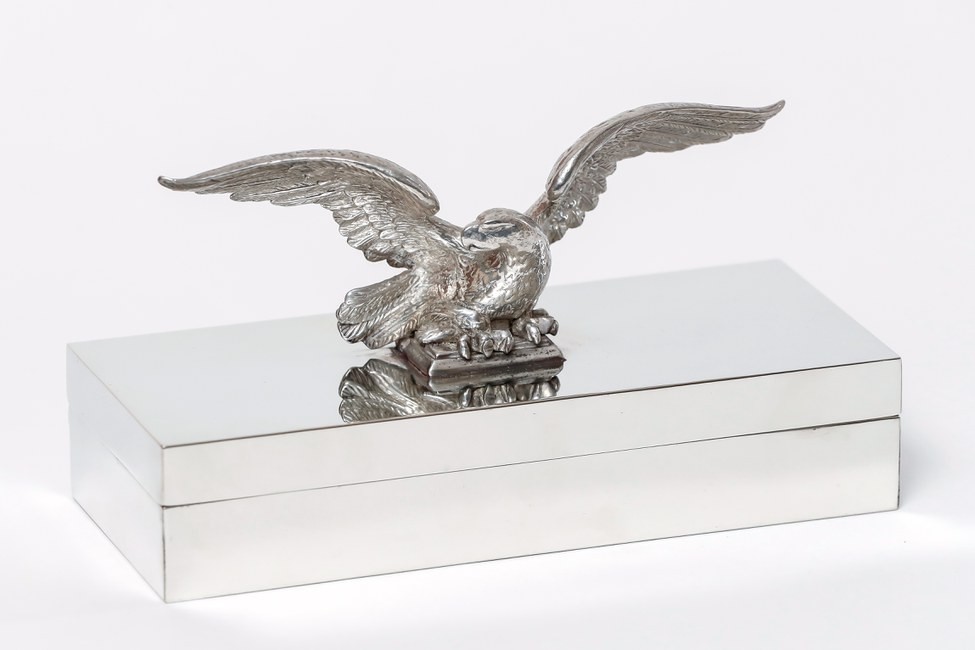 Um estojo em metal prateado polido foi presente de Donald Trump para a posse de Bolsonaro — Foto: Divulgação