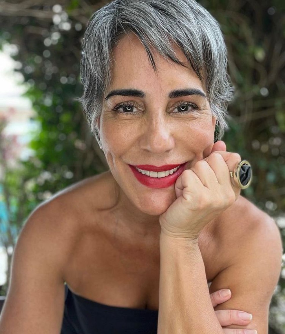 Aos 60 anos de idade,a atriz Glória Pires assumiu a nova fase do amadurecimento do rosto e dos cabelos brancos.