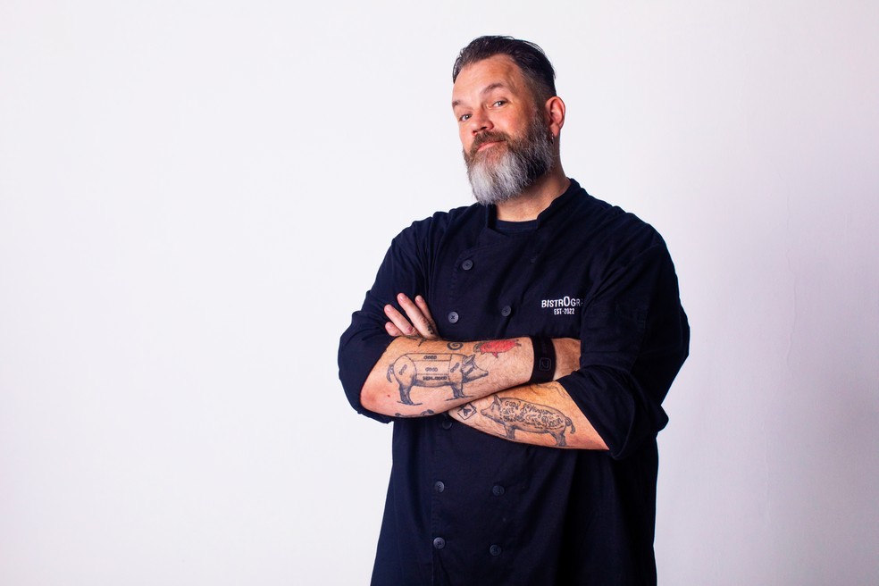 Jimmy Ogro vai ensinar a receita do porc au vin,versão do coq au vin feita com mignon de porco — Foto: Divulgação/Beto Roma