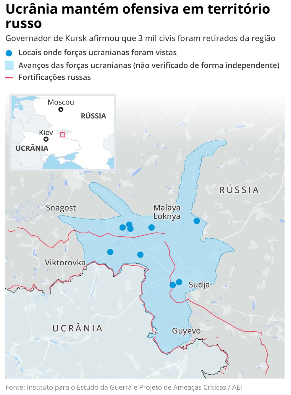 Mapa da incursão ucraniana na Rússia — Foto: Editoria de Arte