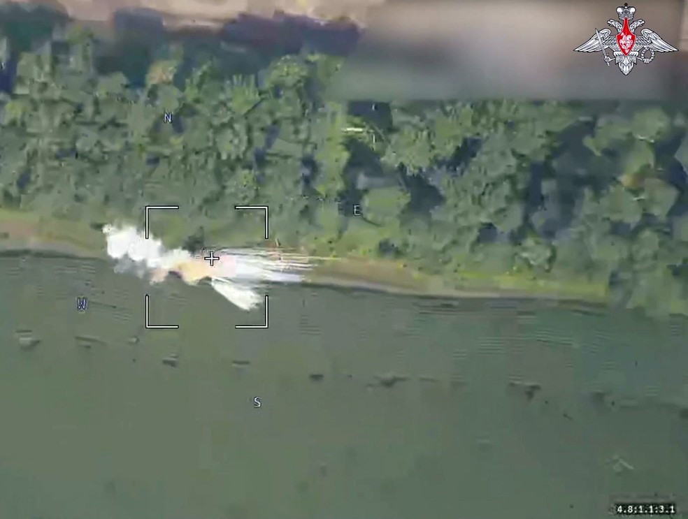 Imagem de satélite mostra ataque russo contra blindado ucraniano na região de Kursk,na Rússia — Foto: Ministério da Defesa da Rússia / AFP