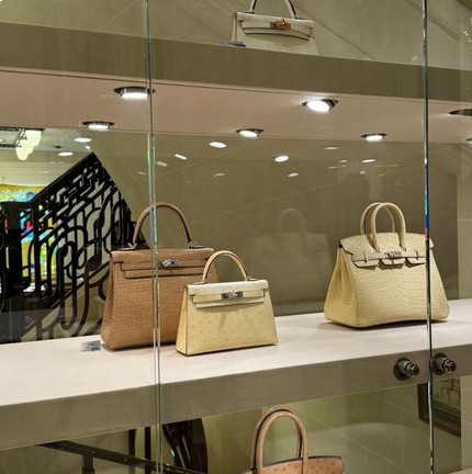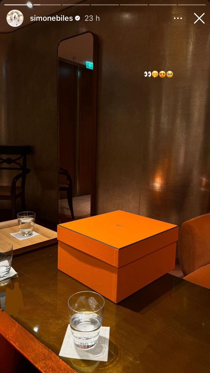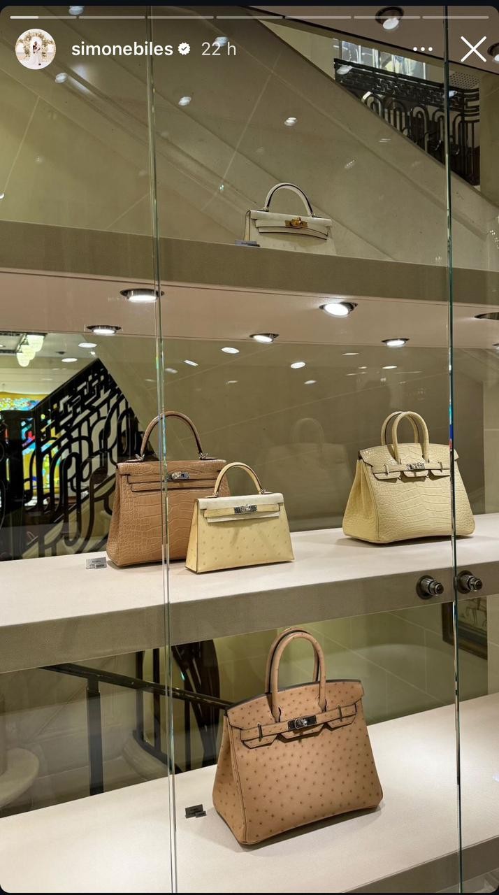 Simone Biles postou essa foto da vitrine da marca francesa Hermès — Foto: Reprodução da internet