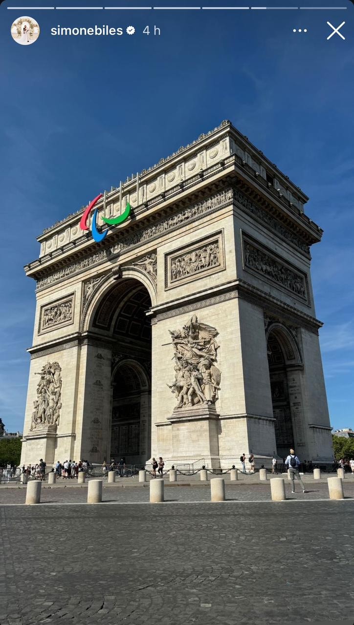 Simone Biles também fez uma foto do Arco do Triunfo — Foto: Reprodução da internet