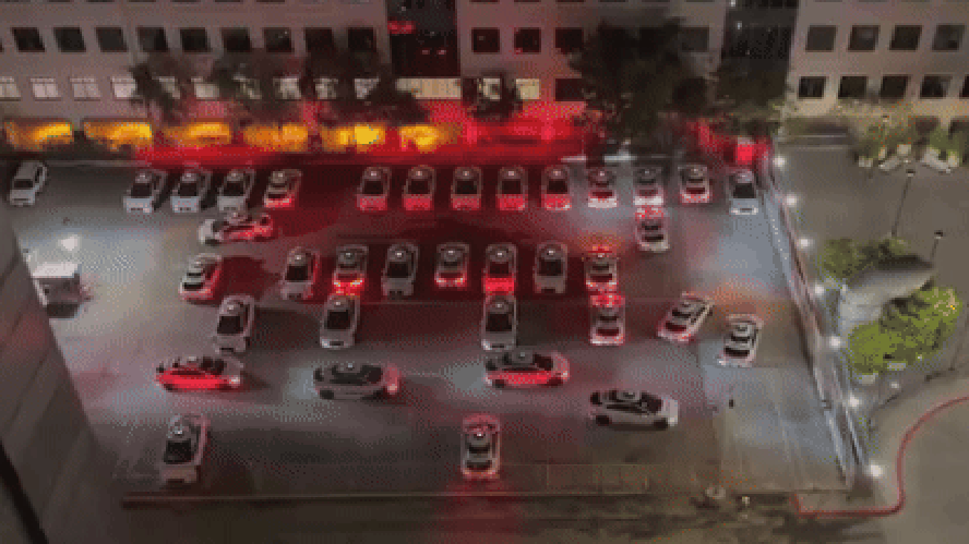 Carros elétricos autônomos buzinam uns para os outros em pátio nos EUA no meio da madrugada — Foto: Reprodução