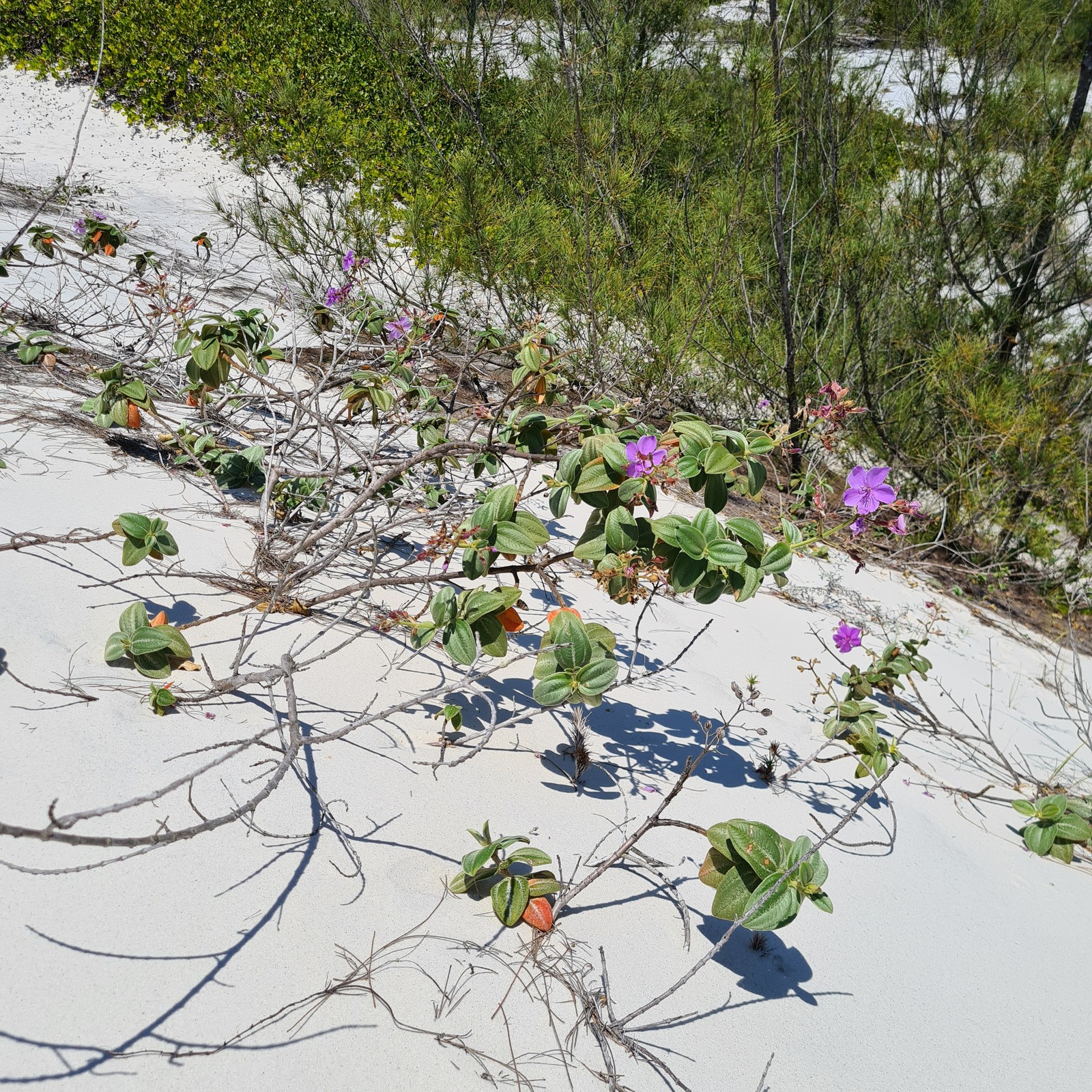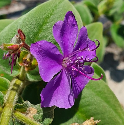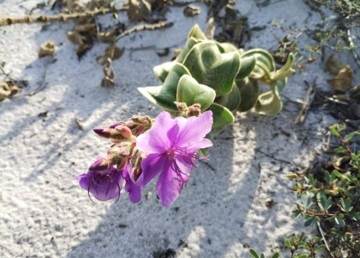 Depois de 40 anos sem ser coletada por pesquisadores,a espécie rara Pleroma hirsutissimum foi reintroduzida nas dunas da Praia do Peró — Foto: Divulgação