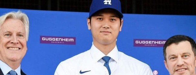 Shohei Otani tem contrato com o Los Angeles Dodgers de 700 milhões de dólares — Foto: Reprodução